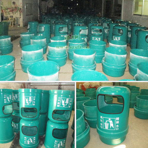 惠州工業園車間,玻璃鋼果皮箱等待絲印