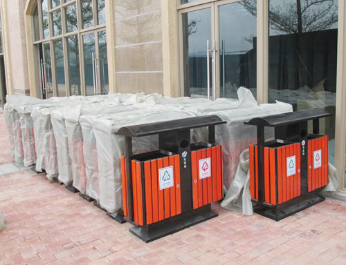 云浮市云安區(qū)街道辦采購的鋼木垃圾桶,最關(guān)心的兩個問題:1.結(jié)實、耐用、防腐蝕! 2.顏色要靚麗,款式新穎,客服接受定制。