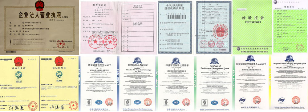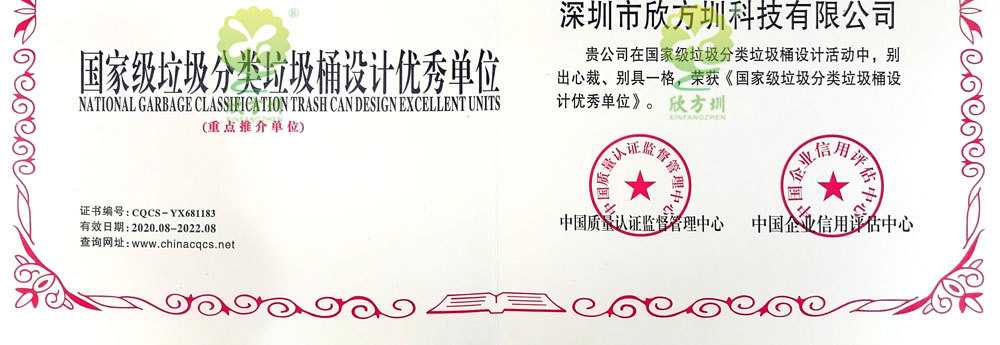 欣方圳營業(yè)執(zhí)照、稅務(wù)登記證、組織機(jī)構(gòu)代碼證,垃圾桶檢驗(yàn)報(bào)告資質(zhì),“欣方圳”注冊商標(biāo),信息安全管理、知識(shí)產(chǎn)權(quán)管理、ISO9001:2015、ISO14001:2015、OHSAS18001認(rèn)證企業(yè)