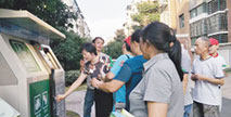 在越城區(qū)蕺山街道岑草園一期小區(qū),居民們正在社區(qū)干部的指導下,嘗試刷卡投放垃圾。當天,這個小區(qū)的居民們首次領(lǐng)到了智能卡,今后他們將使用智能設(shè)備分類投放垃圾...