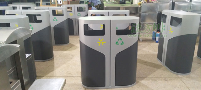 欣方圳定制側(cè)開門鋼制分類垃圾桶批量生產(chǎn)圖