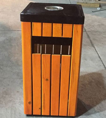 欣方圳戶外鋼木單桶垃圾桶批量生產圖