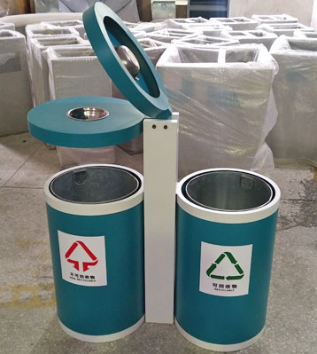 戶外鋼制烤漆分類垃圾桶批量生產圖