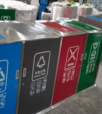 欣方圳社區(qū)戶外大容量四分類垃圾桶工廠批量生產(chǎn)圖